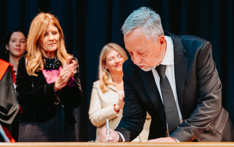 Durante la ceremonia, el decano saliente, Guillermo Barrera Buteler y el entrante firmaron la toma de posesión del Decanato. En su discurso, Toselli presentó los principales ejes de su gestión, que incluyen una "etapa de transformación institucional, modernización académica y fortalecimiento del vínculo de la Facultad con la sociedad".