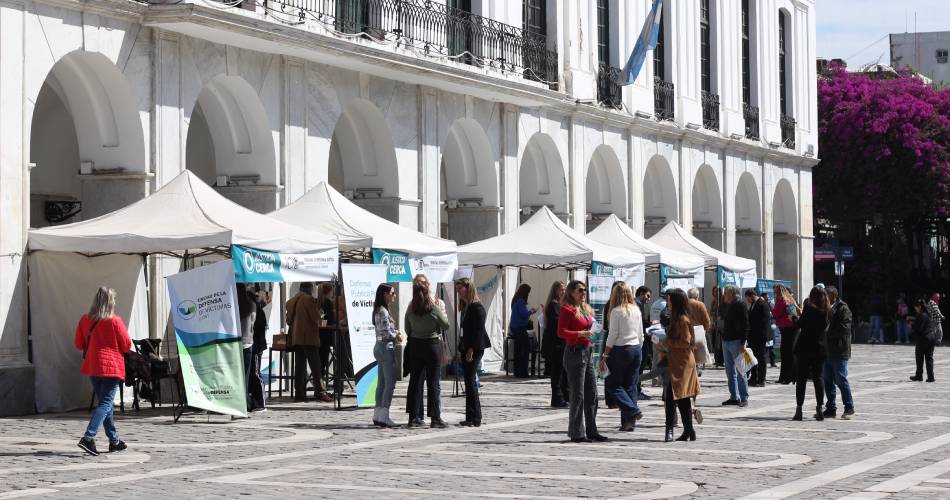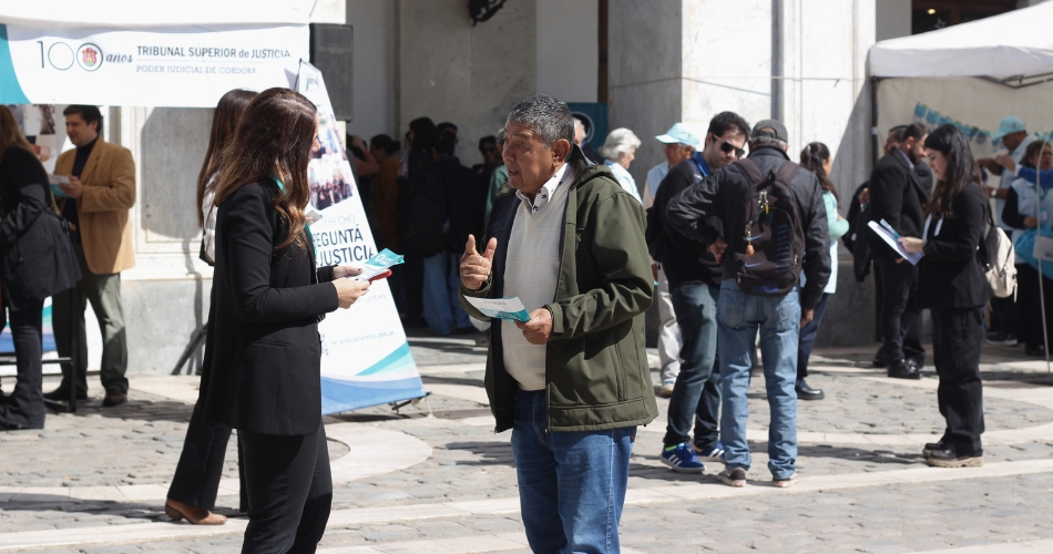 En distintos sectores de la plaza San Martín y en las instalaciones del Cabildo de Córdoba se instalaron stands de las oficinas y programas institucionales del Poder Judicial provincial, que mantienen vínculos directos y permanentes con la sociedad: